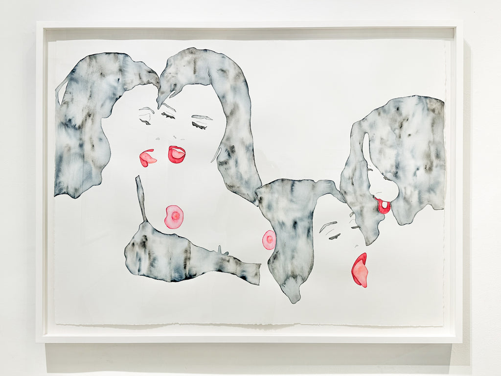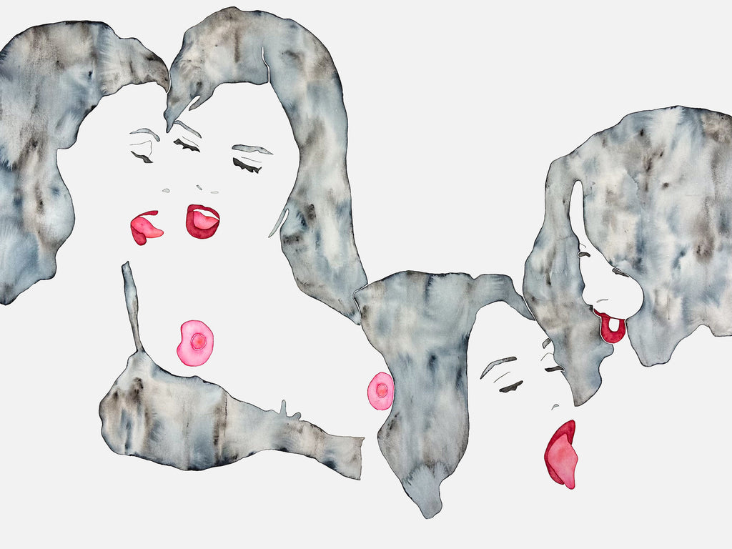 Watercolor plays a central role in my work. Flowers, bodies, and BDSM-tools appear in bright fluid color offering a visual counterpoint to the hard aesthetics of BDSM. The softness and unpredictability of the medium allow the process of painting to mirror the tension between control and trust.