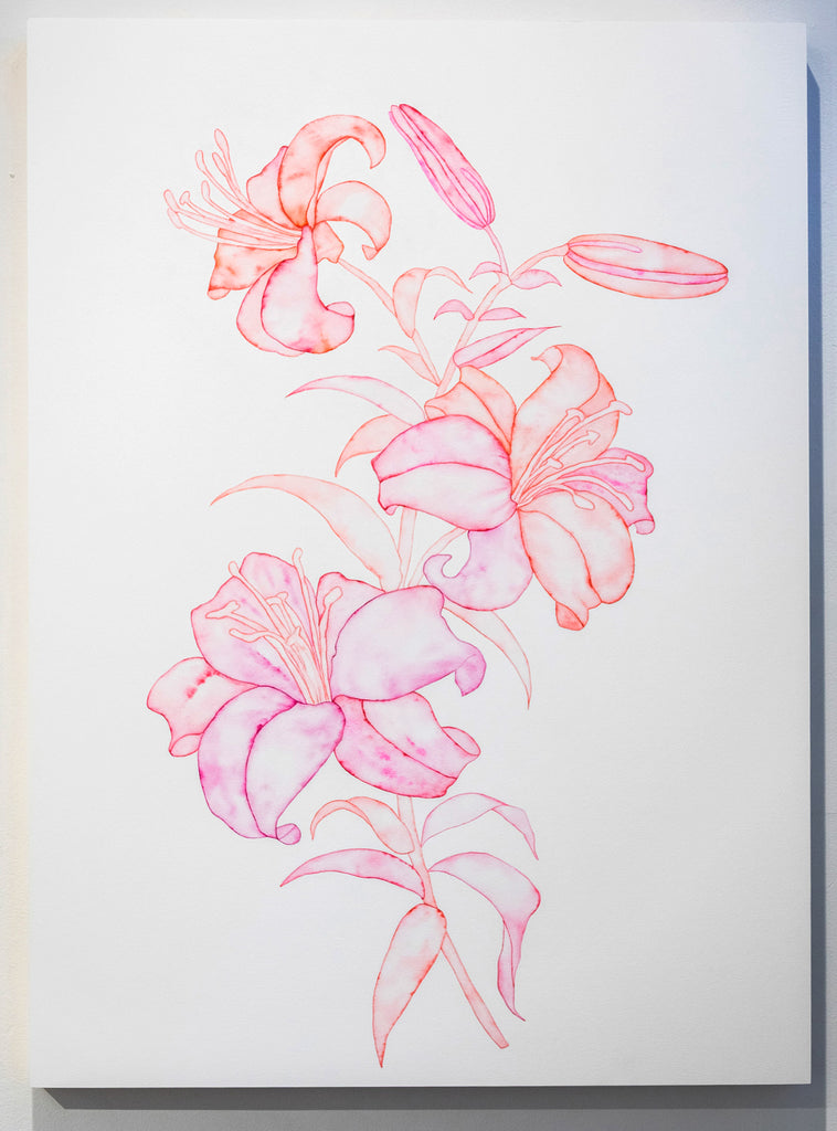 Helena Calmfors "Large Lillies" Watercolor Painting (Mounted on Wood Panel)