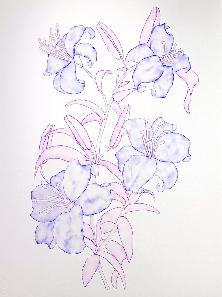 Helena Calmfors "Large Lillies Purple" Watercolor Painting (Mounted on Wood Panel)