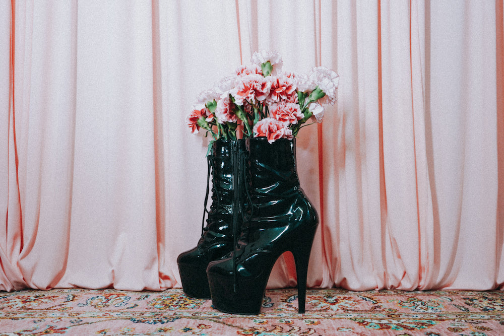 My photography expands on these central themes through self-portraiture, using flowers and fetish wear to explore different facets of selfhood. The juxtaposition of hyperfeminine aesthetics and elements of BDSM underscores the complexities of occupying femme space in queer communities. With these portraits, I explore not only my own identity but also broader themes of acceptance, agency, and the transformative power of dress and performance in the queer experience.