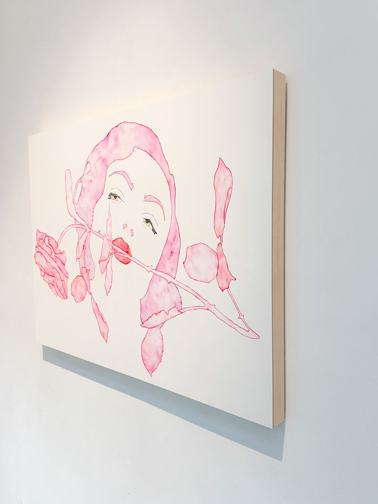 Helena Calmfors "Softness" Watercolor Painting (Mounted on Wood Panel)